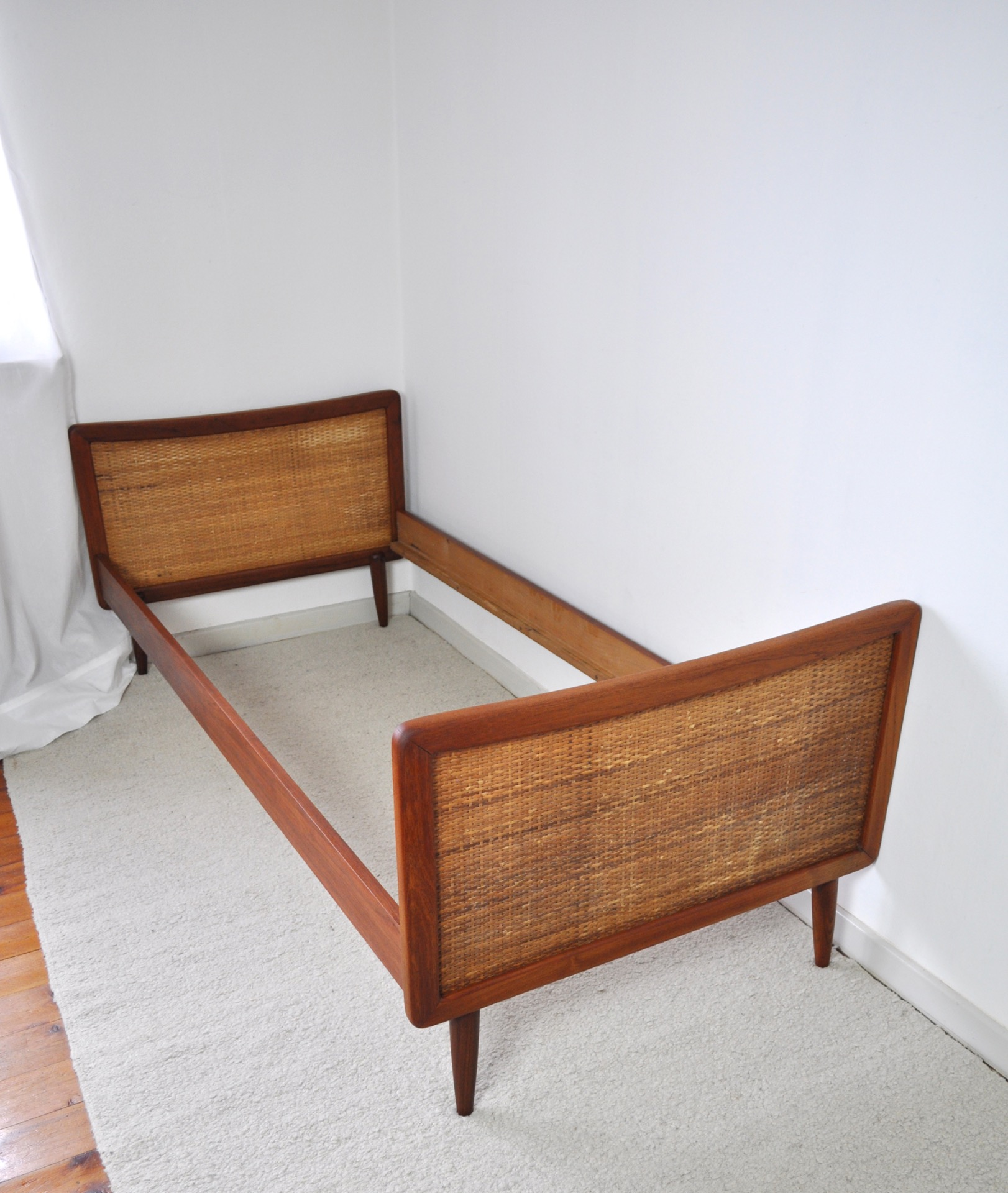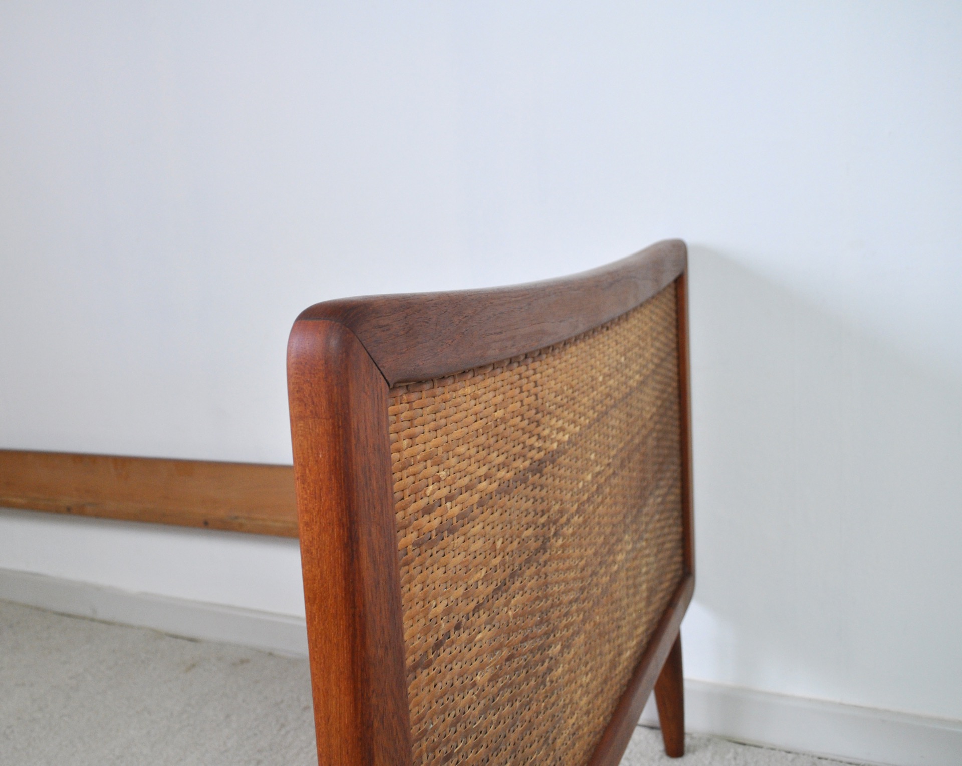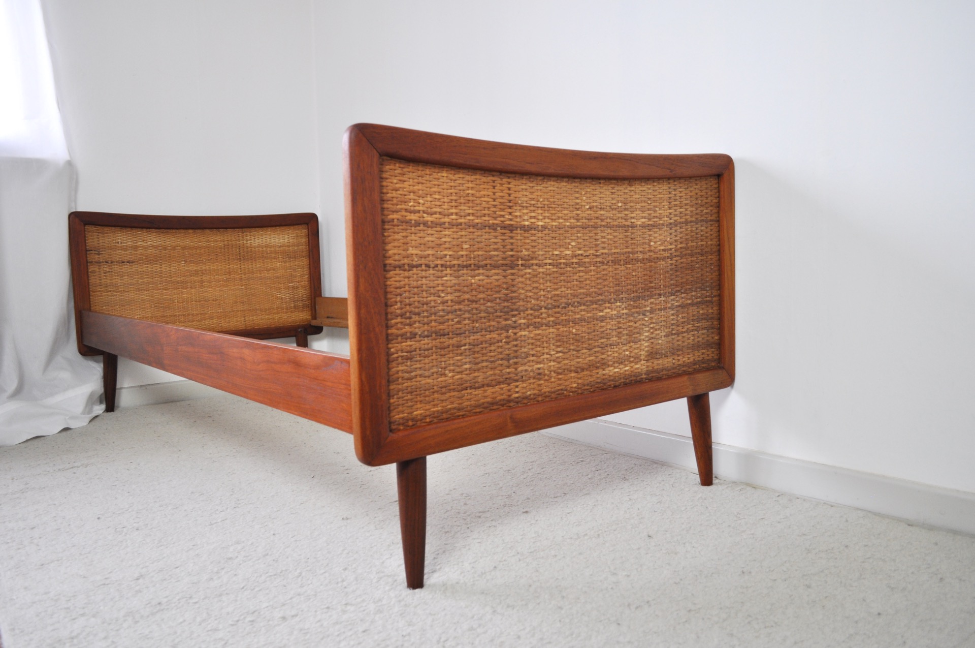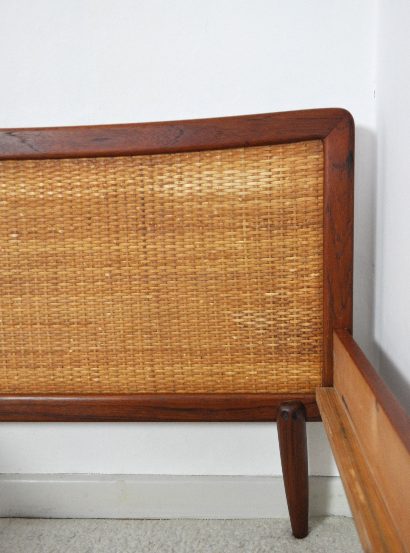 SCANDINAVIAN MODERN TEAK BEDWITH WOVEN CANE