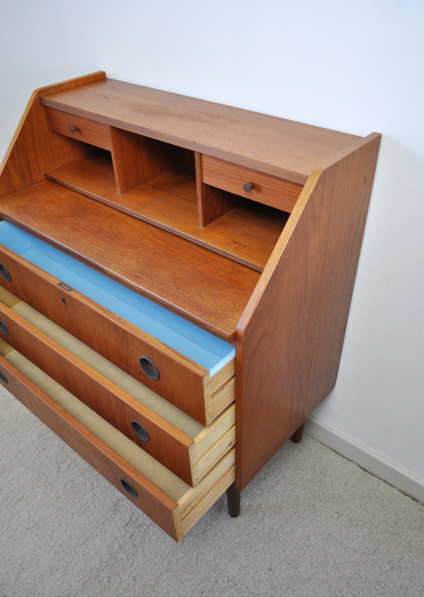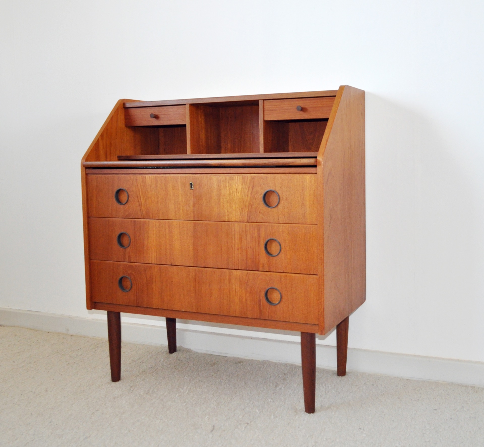 SCANDINAVIAN MODERN TEAK SECRETAIRE, CHEST OF DRAWERS, 1970s