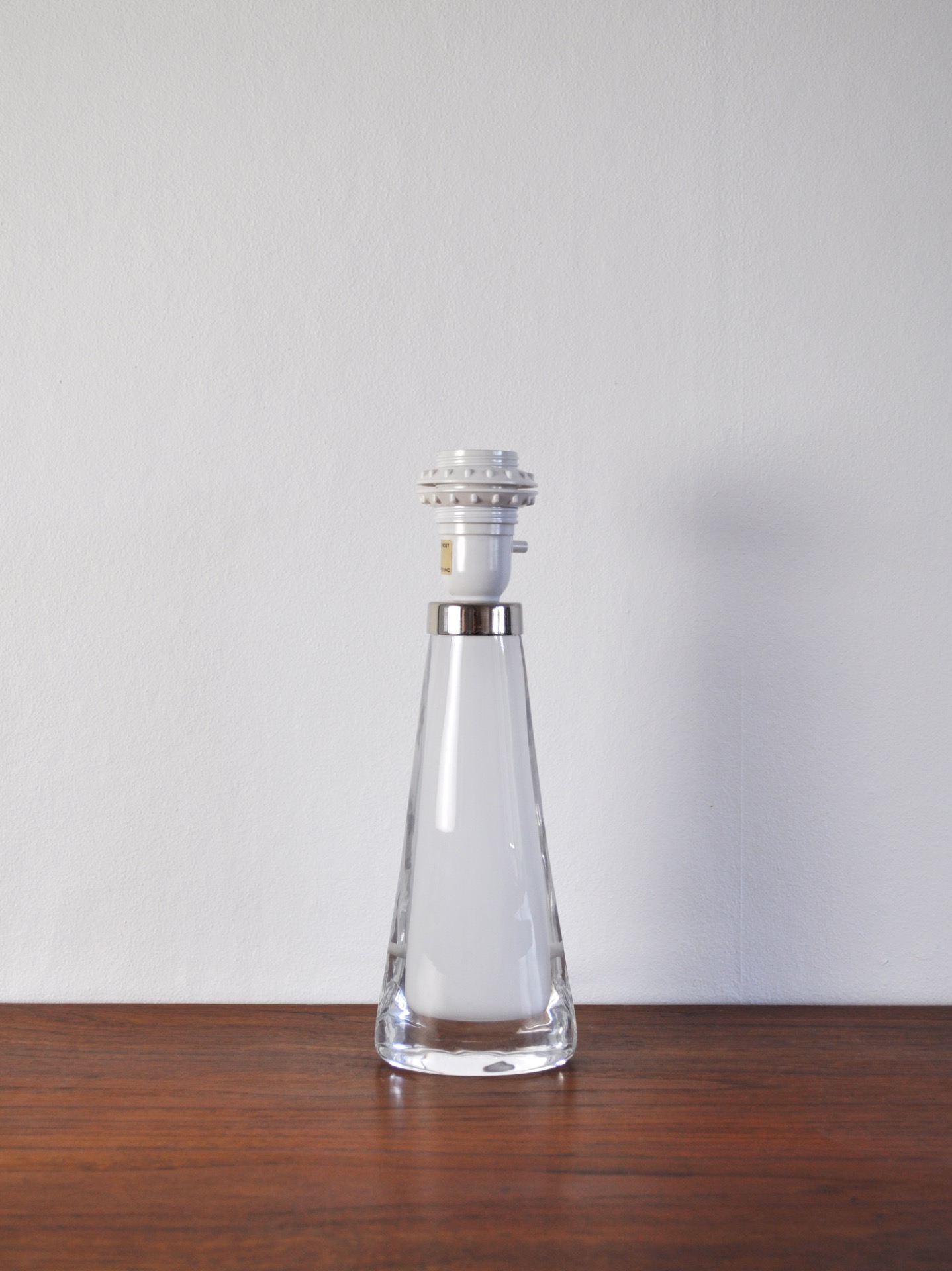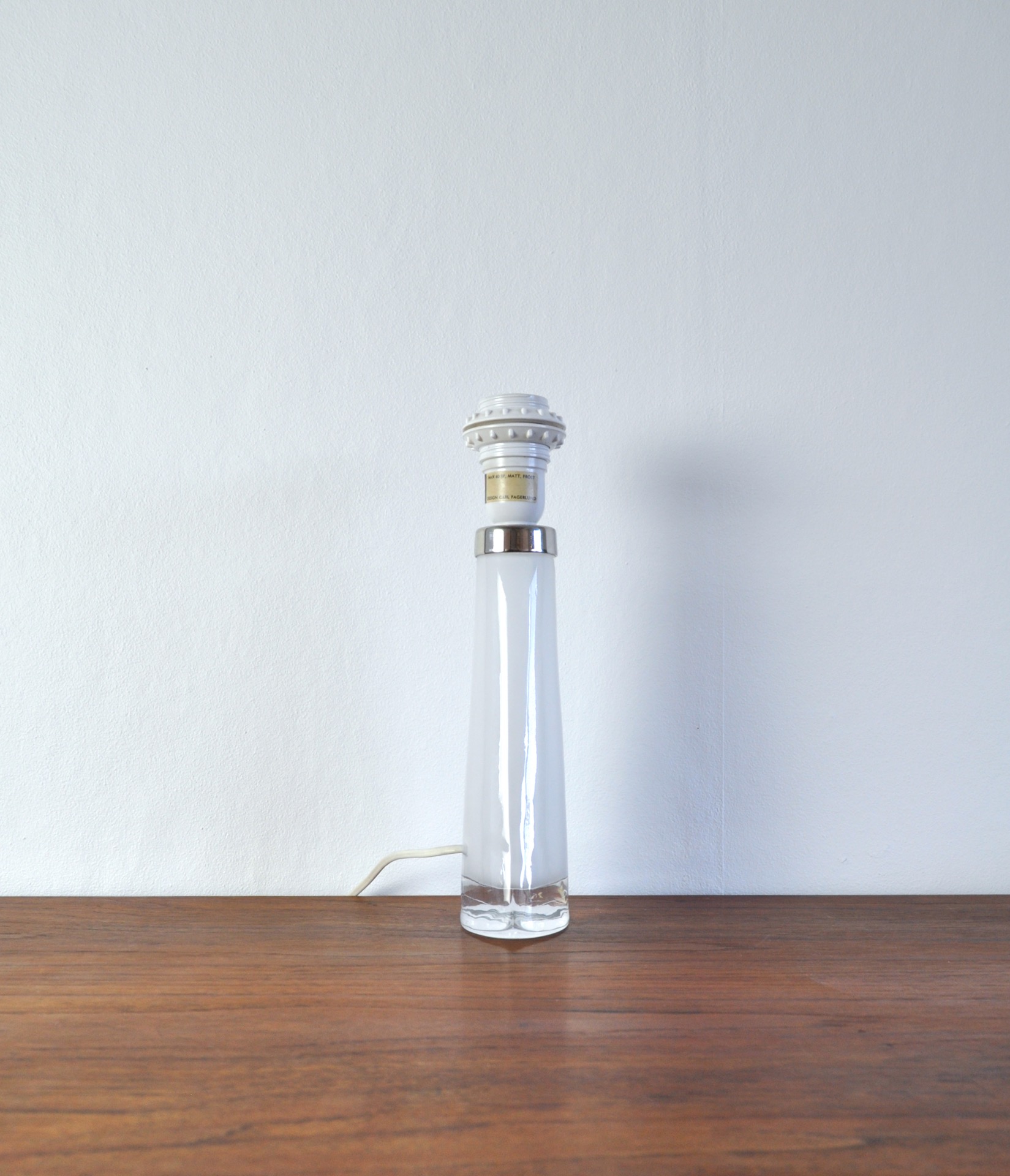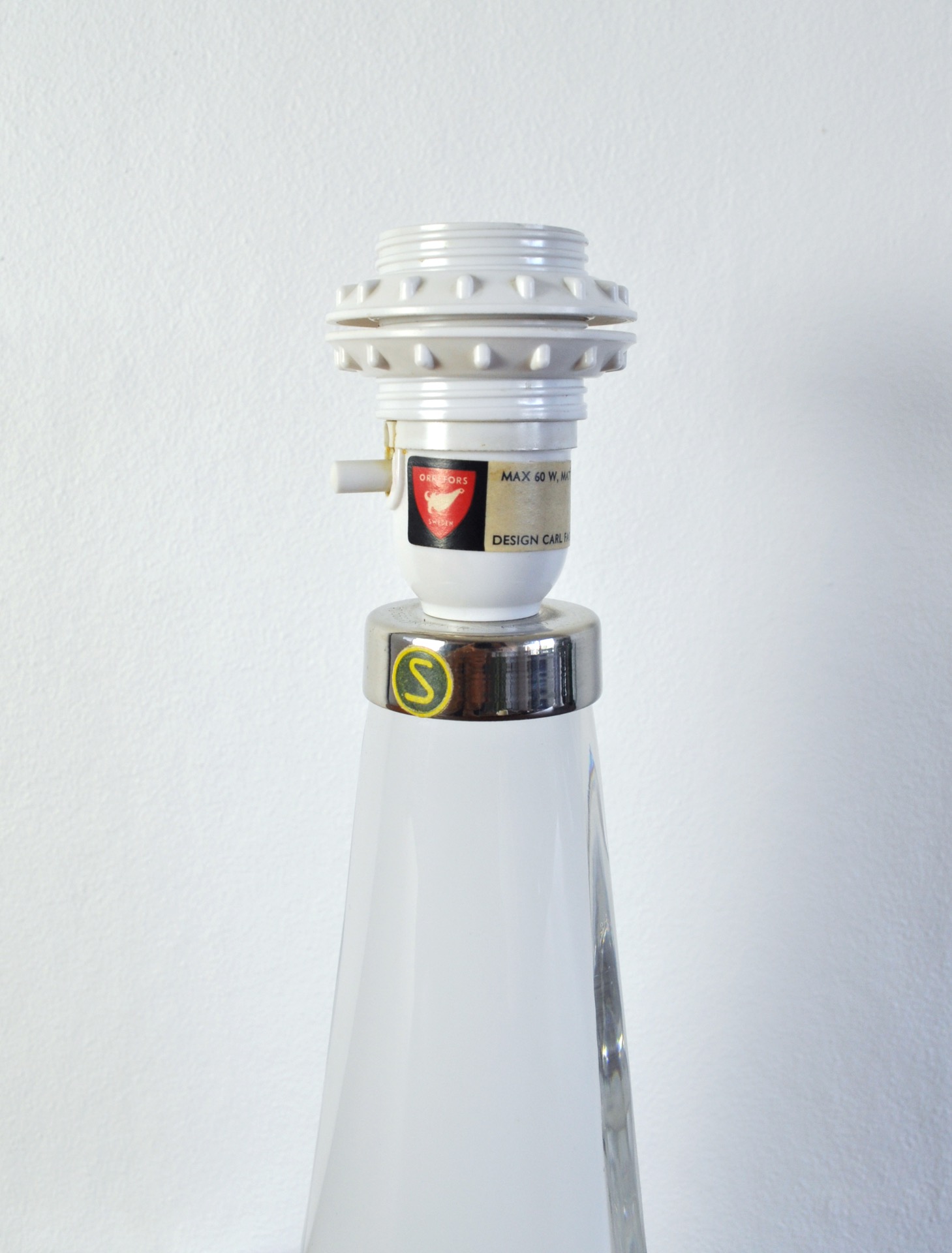 White glass table lamp by Carl Fagerlund for Orrefors, Sweden, 1960s. Engraved in the bottom "Orrefors 1566" and market on chrome plate.