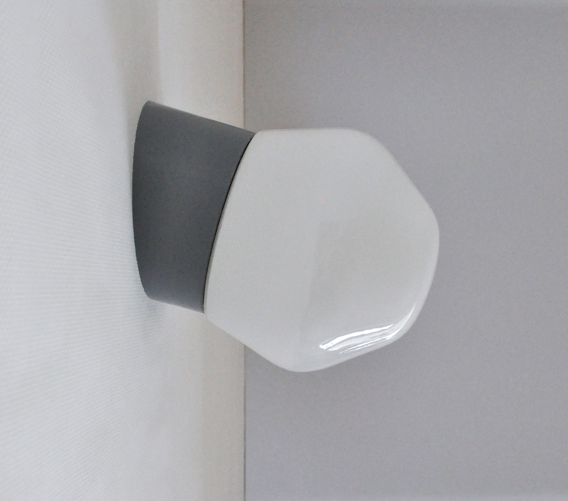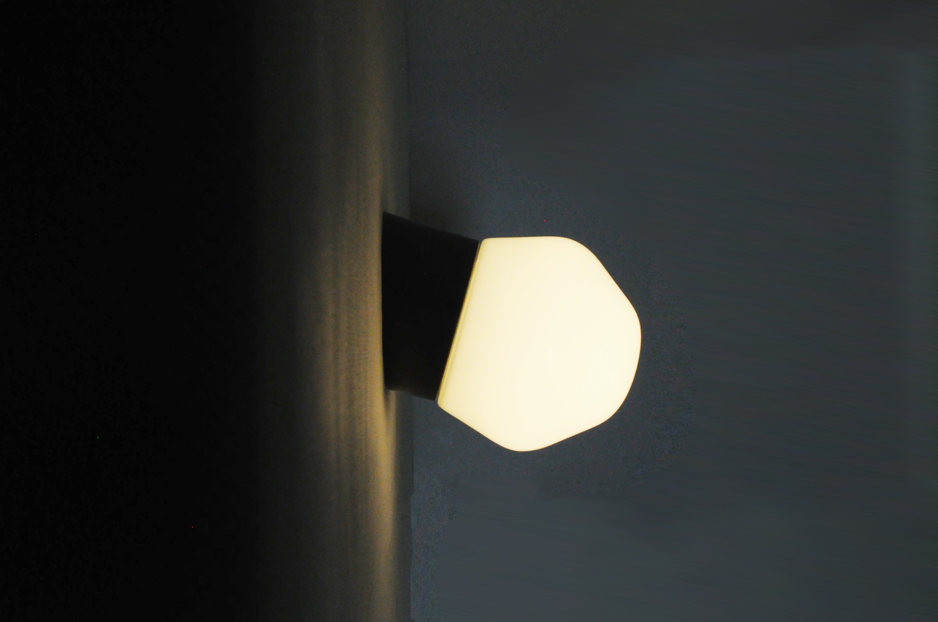 Scandinavian Modern milky white opaline glass and plastic wall lamp by Louis Poulsen, Denmark 1960s.