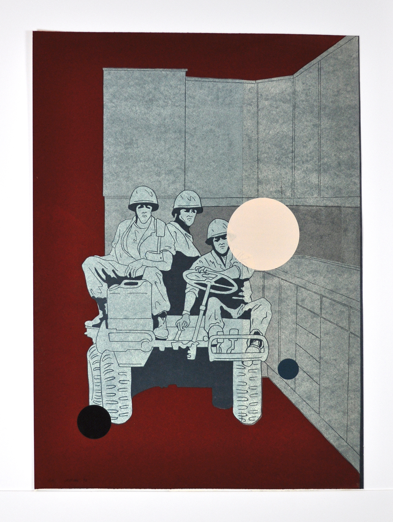 Lars Grenaae works with all kinds of graphics. He is an artistic virtuoso and uses his technical superiority to create high-quality works. In his artistic expression, he mixes personal nostalgia with different motifs and creates a kind of graphic collage. The expression is always experimental and the works are often packed with political comments in the form of humorous compilations.