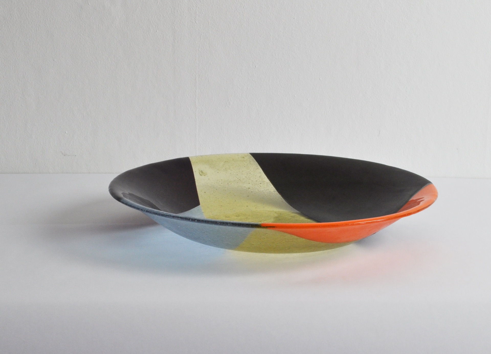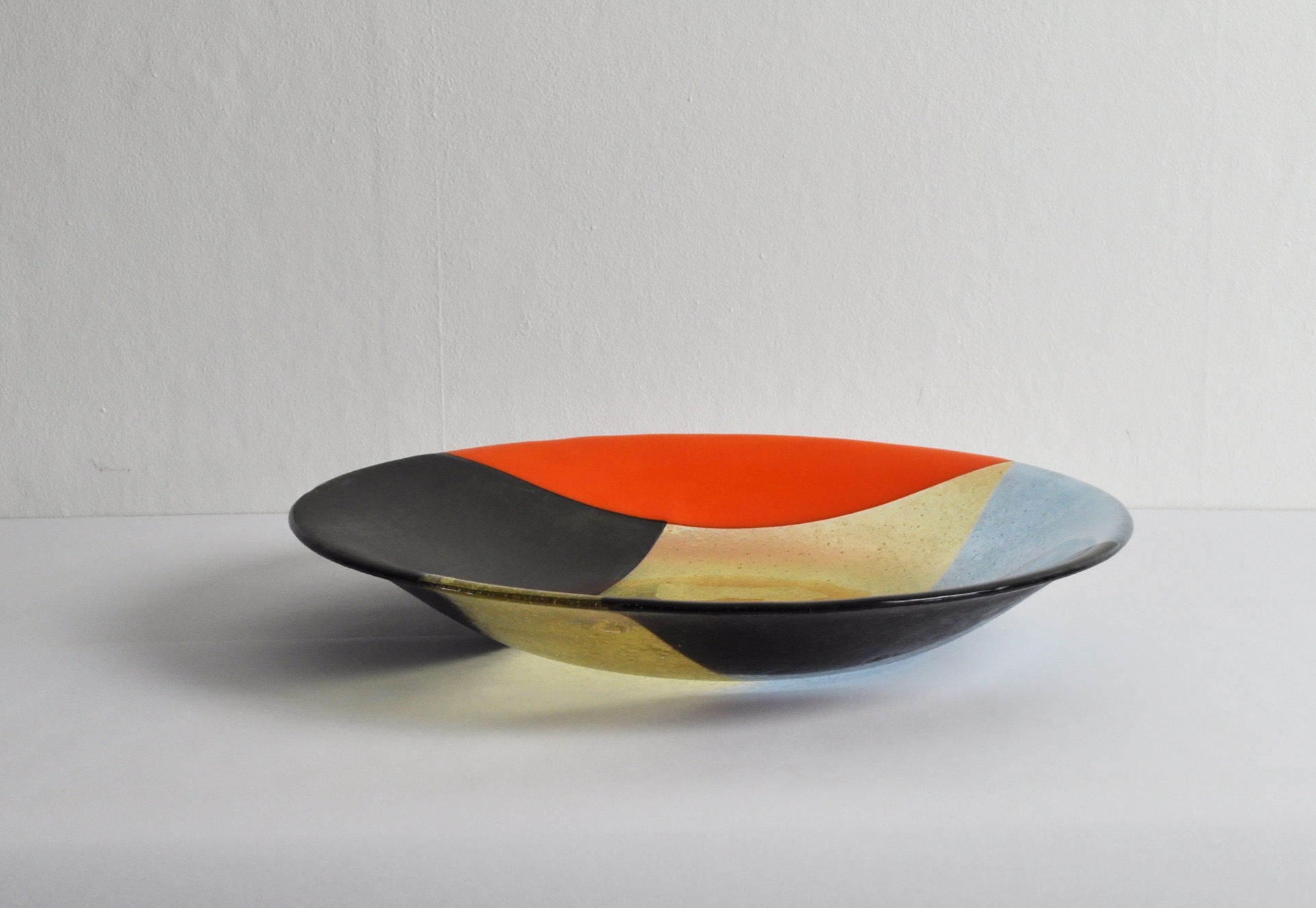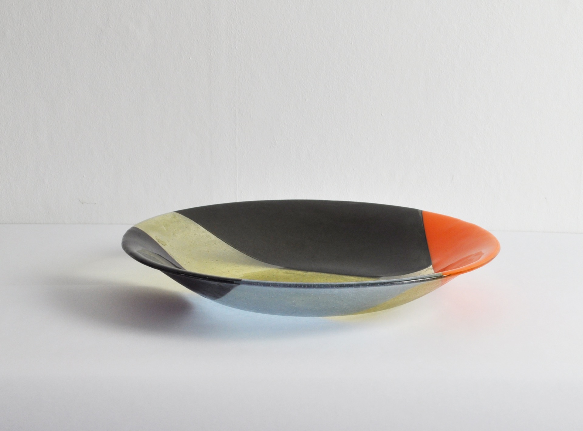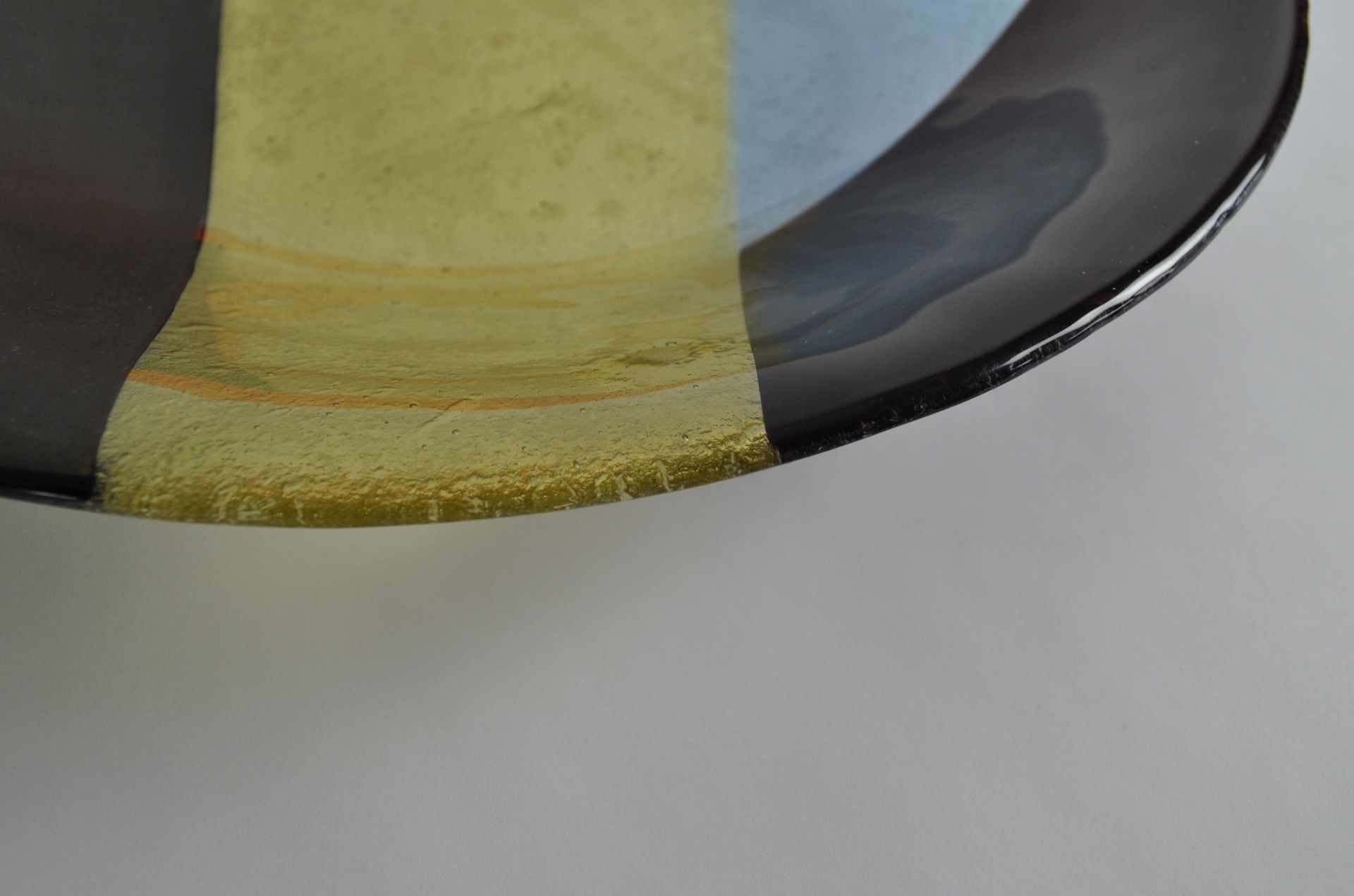Stained glass plate or dish by the Danish artist Peter Stuhr. Compatible glass, handmade, late 1990's.