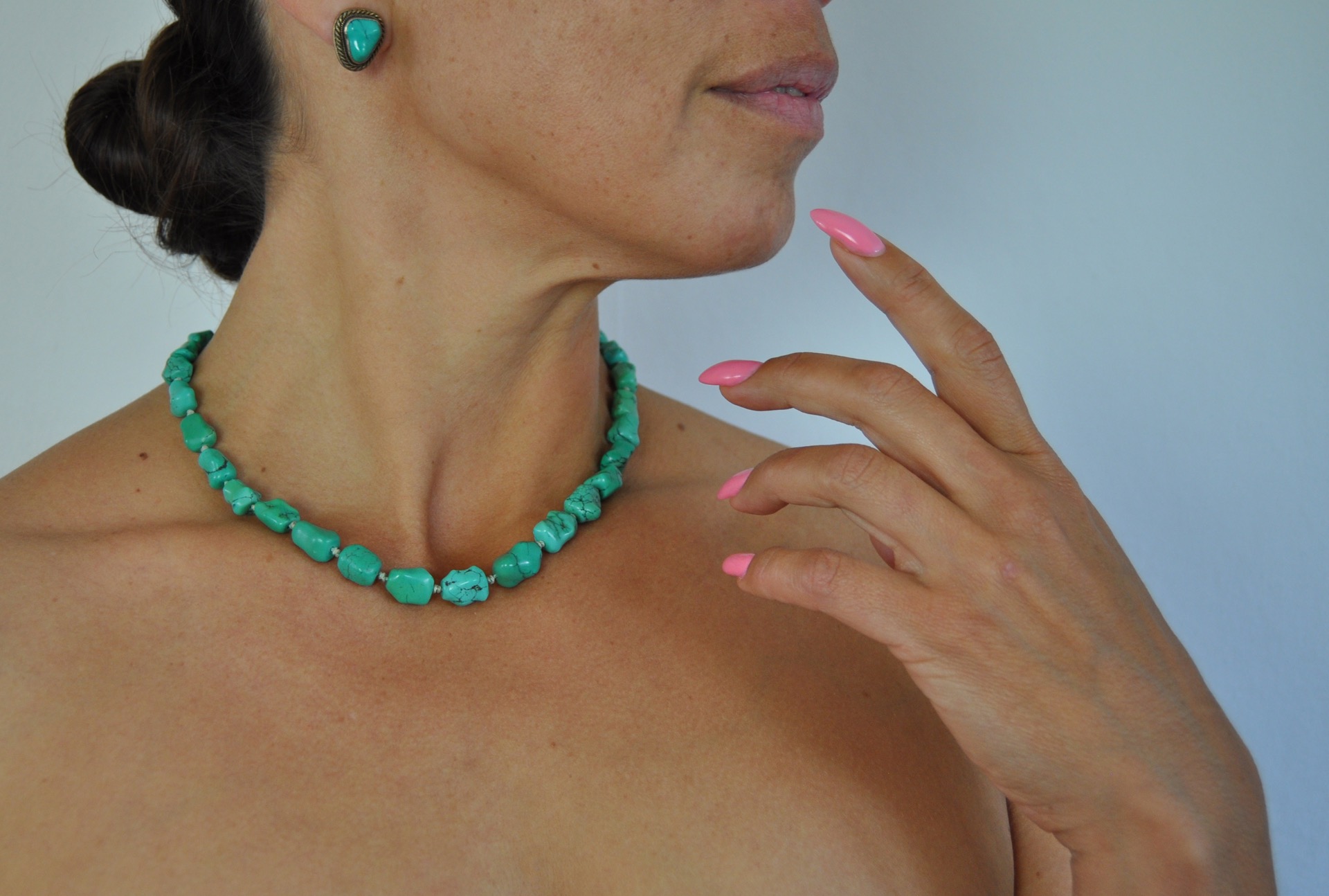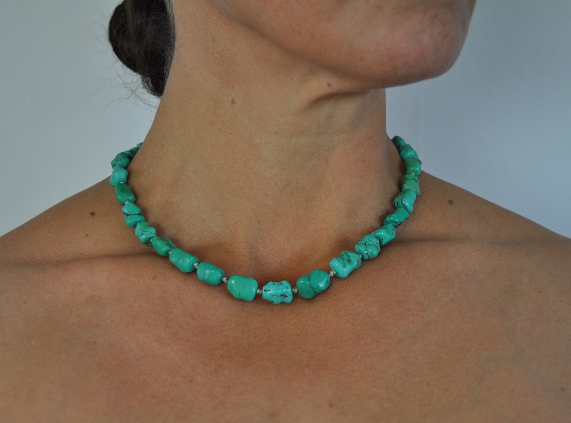 VINTAGE NECKLACE WITH GENUINE TURQUOISE AND STERLING SILVER BY ERIK POUL FENSTER, DENMARK