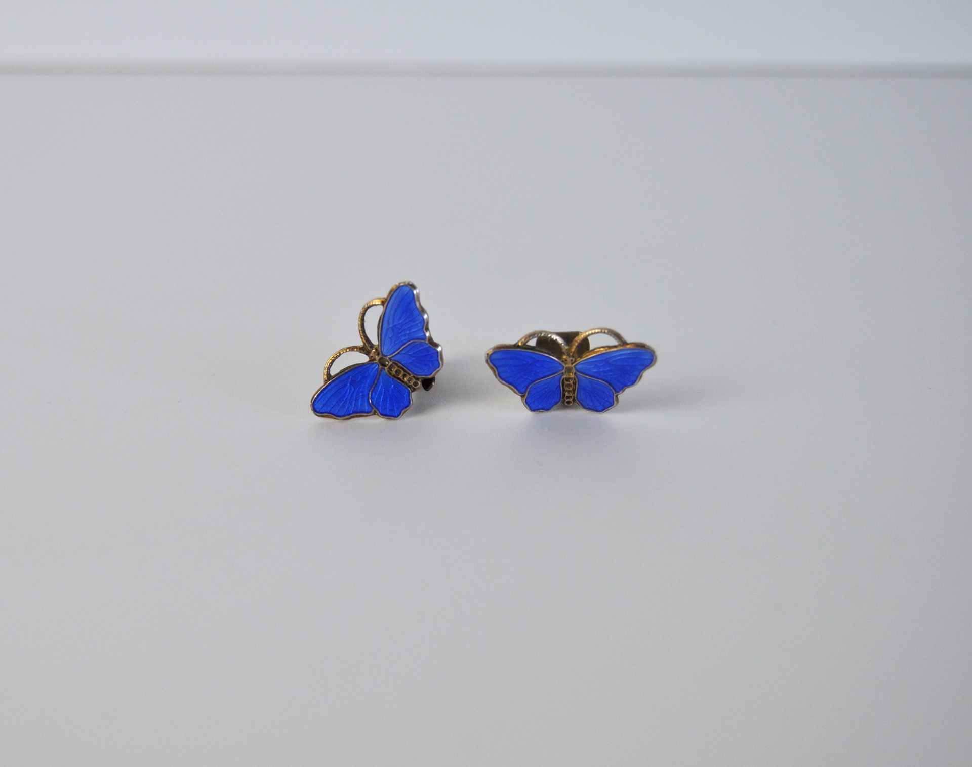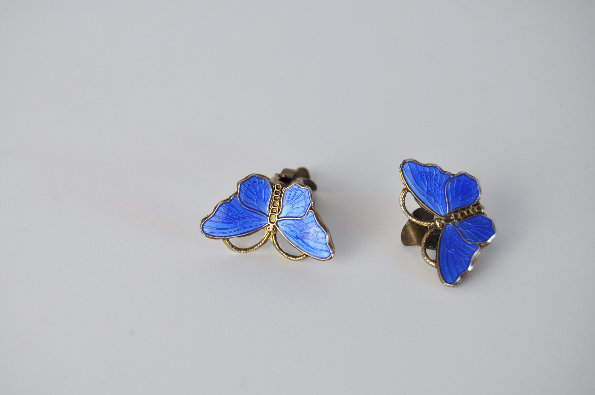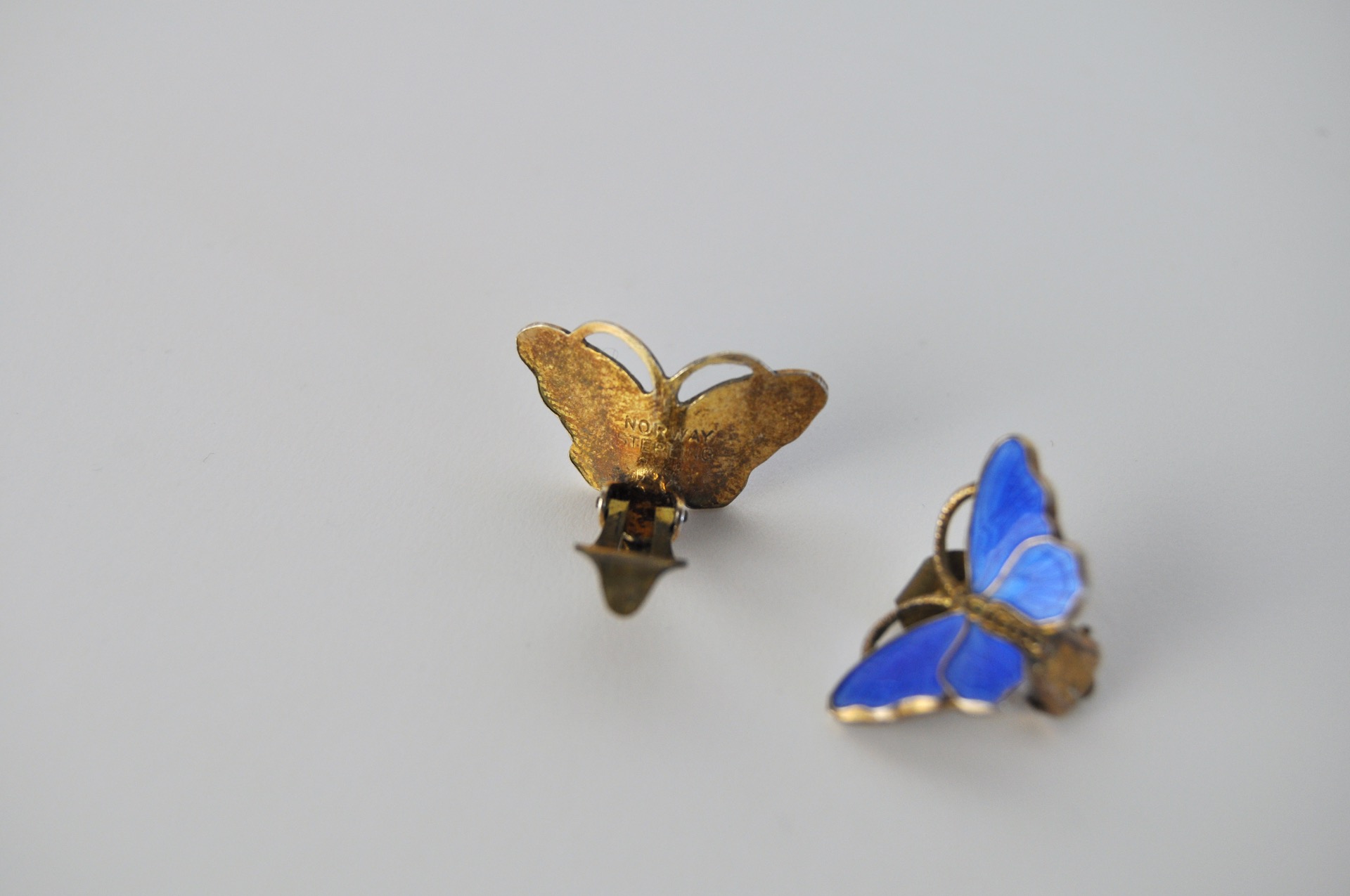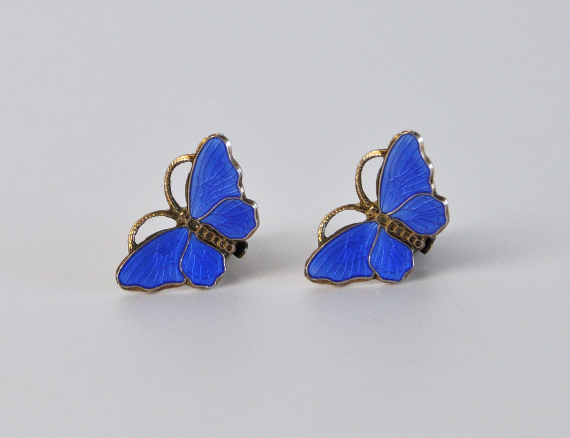 VINTAGE NORWEGIAN SILVER & ENAMEL BUTTERFLY EAR CLIPS BY OPRO