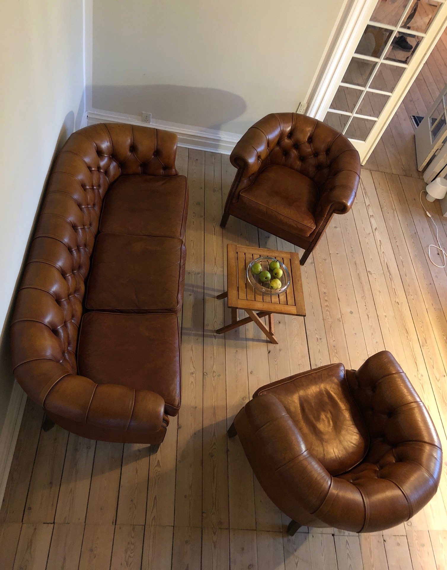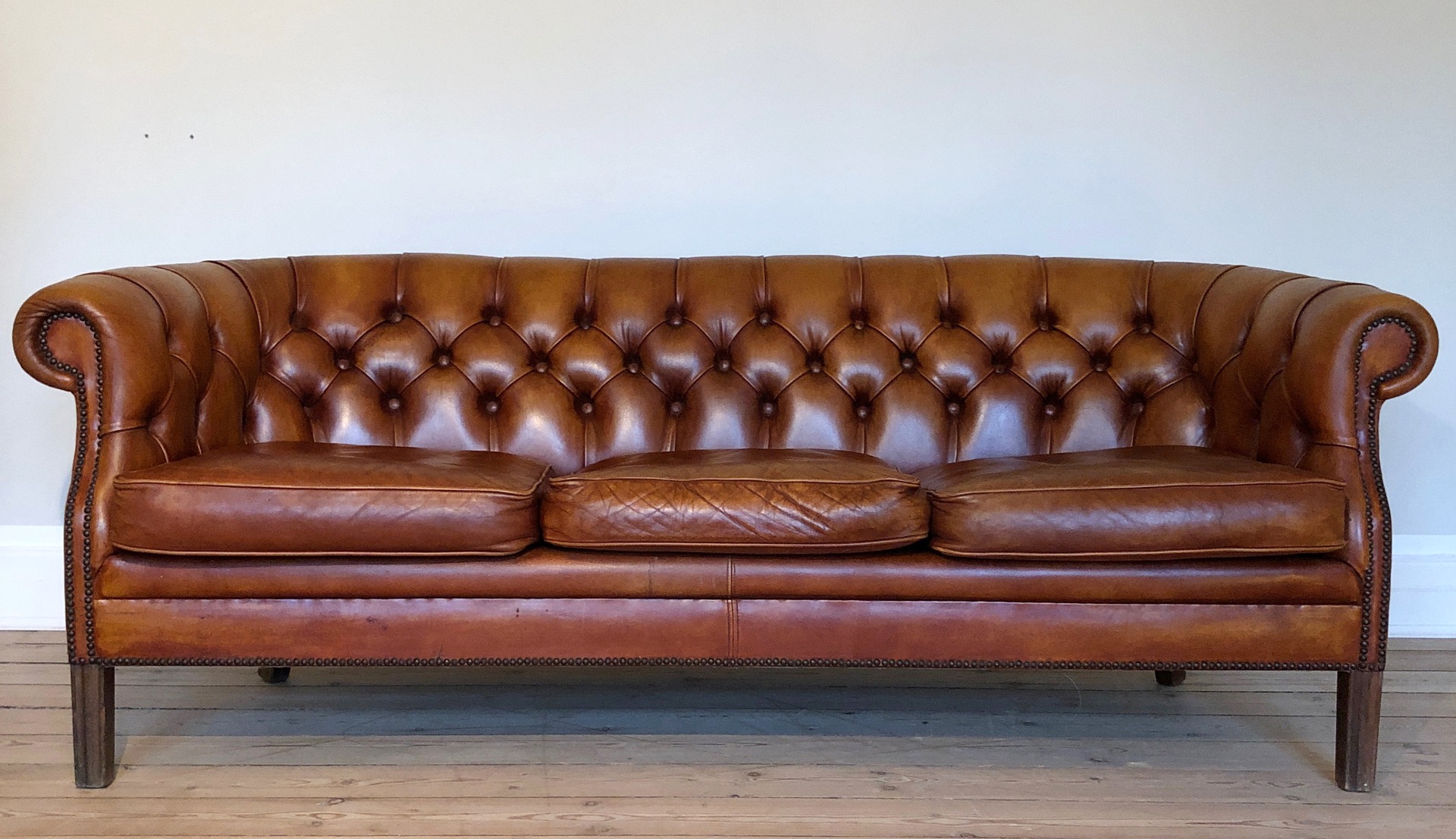 Very comfortable Swedish whiskey brown chesterfield 3-seat sofa, probably from the 1970s. The Leather has been cleaned, hand dyed, waxed and hand polished. Beautifully patinated with signs of wear consistent with age and use.